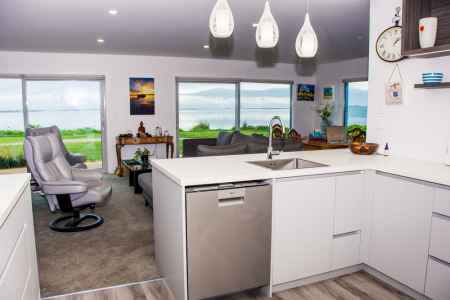 This project was not without its hurdles. Situated on the water’s edge, the build was heavily restricted by easements and council building setbacks meaning the home had to be renovated within a very similar footprint to the existing bach. However, where there is a will, there is always a way and in this instance the way has led us to a beautiful dwelling that our customers are thrilled to call their home.