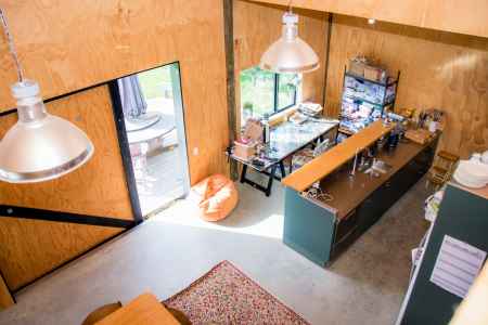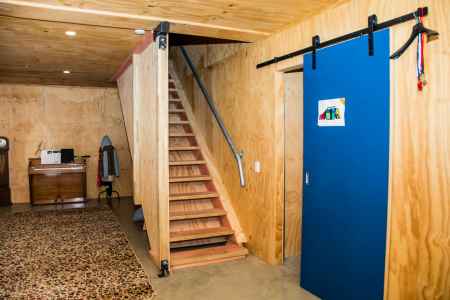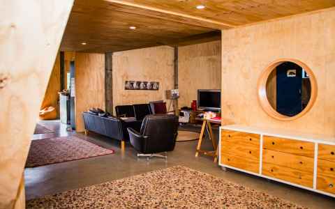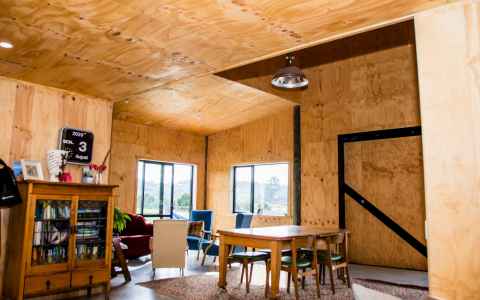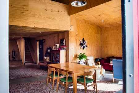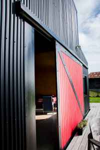 This 250m2 American style barn was constructed and converted into a spacious family home. The build was simple, yet clever and we just love the bright red door.